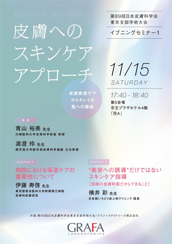 共催セミナーのご案内「皮膚へのスキンケアアプローチ〜皮膚疾患ケアからキレイな肌への挑戦〜」(第89回日本皮膚科学会東京支部学術大会)