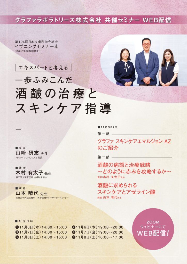 第124回日本皮膚科学会総会 共催セミナー WEB配信 エキスパートと考える 一歩ふみこんだ 酒皶の治療とスキンケア指導