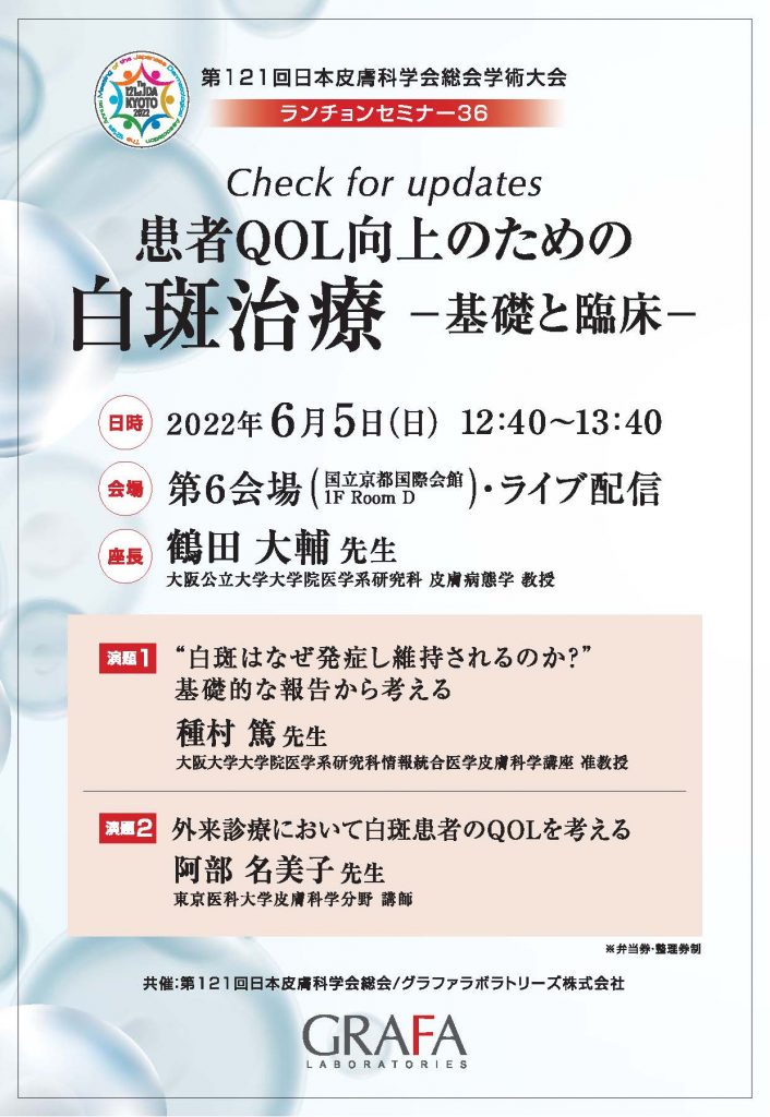 第121回日本皮膚科学会総会てランチョンセミナー36を共催します。詳細は下記となります。